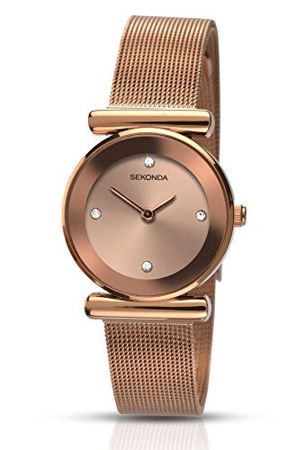 This ladies Sekonda watch is made from stainless steel and is fitted with a quartz movement. It fastens a rose metal bracelet and has a bronze dial.