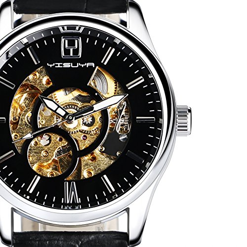 If you are looking for a product YISUYA Men’s Black Skeleton Hand-wind Automatic Mechanical Watches with Genuine Leather Band Casual Business Steampunk Wristwatch then I will show you information and reviews about this product. YISUYA Men’s Black Skeleton Hand-wind Automatic Mechanical Watches with Genuine Leather Band Casual Business Steampunk Wristwatch searched by people on the internet then not to run out of this stock. Make purchases with the click of a button 'Buy Now' if you really want to have this product. The following information and reviews about this product: